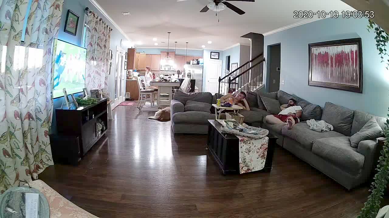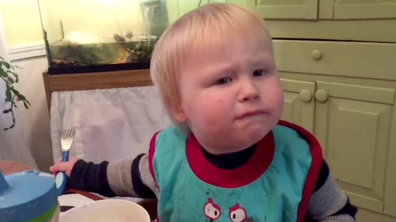"Honey, I Found the Kid" A woman walks around the house and explains that she had to move all the stools and chairs so that her young son wouldn't climb onto the counter. She then shows that the boy moved a table to get onto the counter and covered himself in honey.
