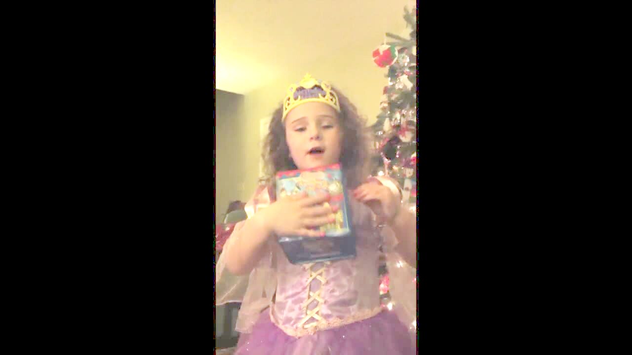 A young girl opens her Christmas gift and says she always wanted it but doesn't know what it is.