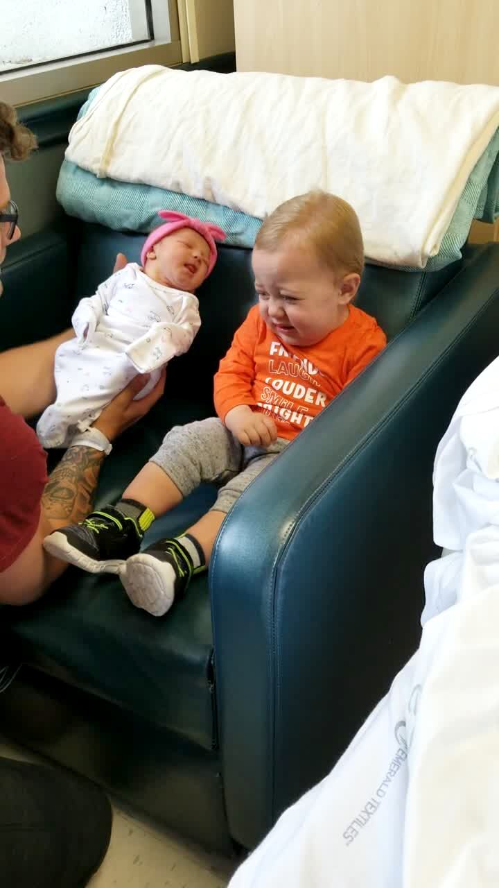 A young girl rides her bicycle onto a driveway and crashes into her brother on his bicycle. Security footage.