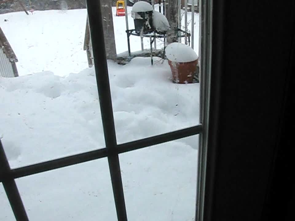 A tot boy stands in the snow and a woman asks him if he is having fun and he screams "No!" and she asks him if he likes snow and he screams even louder in the backyard.