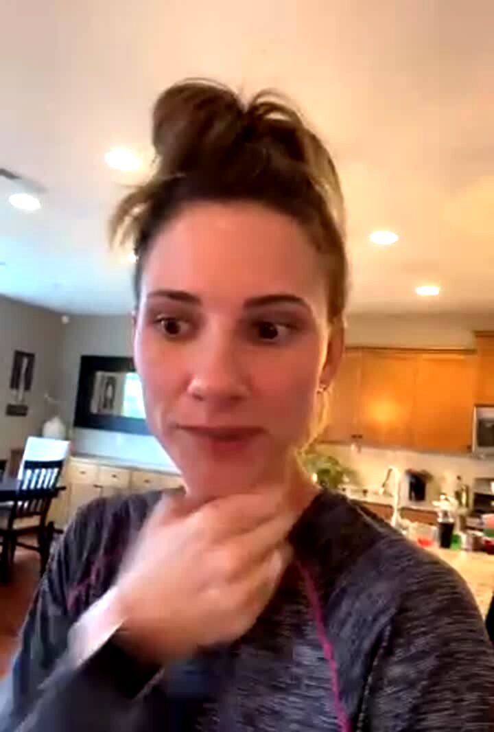 A woman tries to do a flip over her husband to show her friends, but he moves at the last minute and she falls on her face.