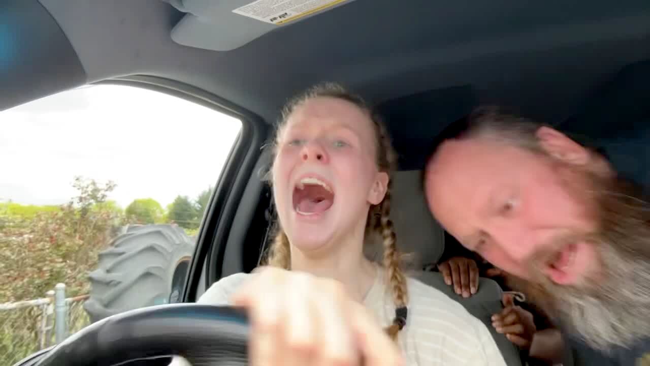 A teen girl attempts to make a vlog in a car, then winces and starts to cry when she spots a bug as it crawls up her hair in a car.