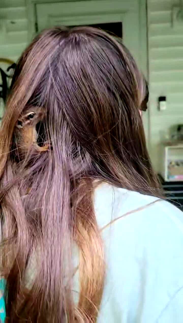 A young girl shows her father that she has a chipmunk caught in her hair in a yard. She says that her dog chased it until it climbed her. Then she asks him to catch it with gloves on and let her hold it, but he just picks it up and releases it into the woods.