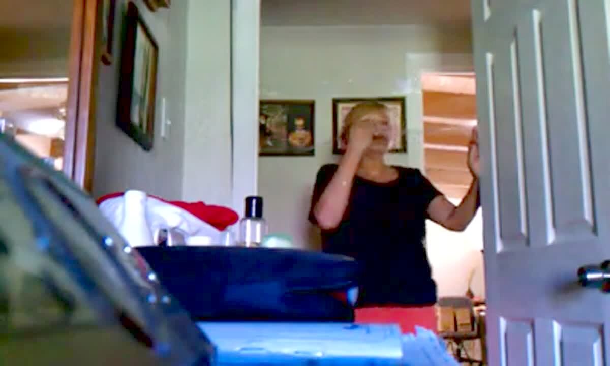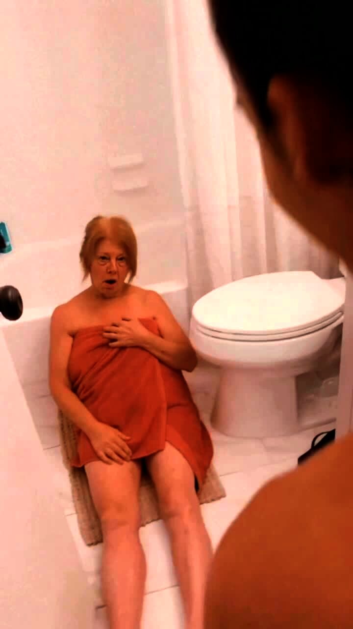 "Parental Police Prank" A senior woman is shocked as her daughter plays a prank where she calls to say she got pulled over. She tells her mom she has to pretend that she fell in the shower when the cop arrives at her home to verify. The woman sits in a bath towel and pretends she fell in a bathroom.