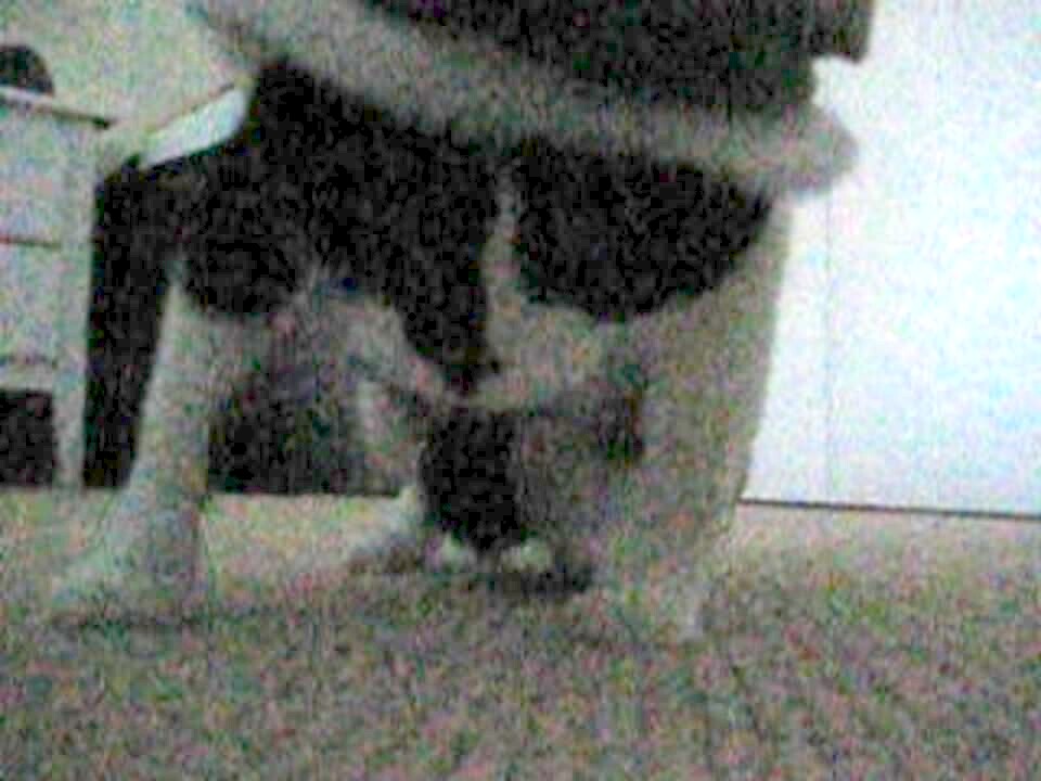 A cat in the living room leans against a lamp shaped like a leg (from A Christmas Story) and runs away when it falls over into a Christmas tree. Security Footage.
