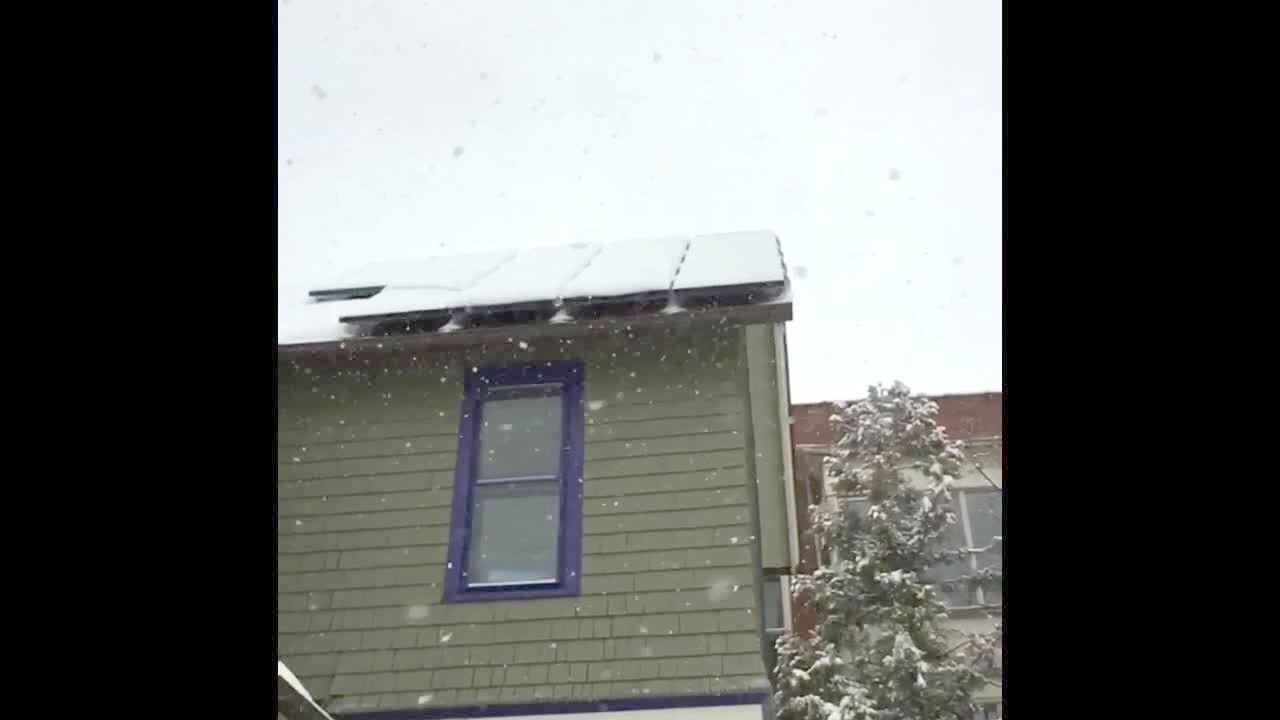 Three deer run up the driveway, then break a window in the garage while a man watches. Security footage.