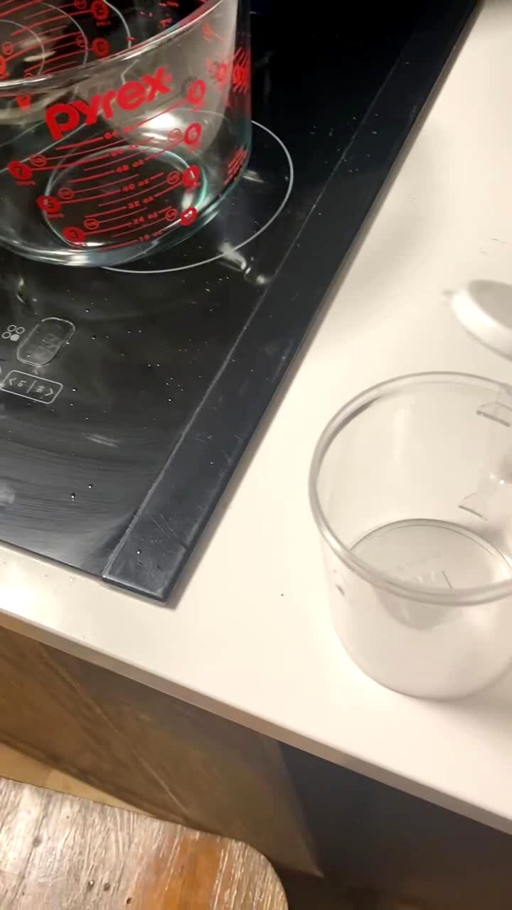 The woman with the camera asks a young girl if she wants to drink from a bottle of vinegar in the kitchen and he girl says "yes." The woman pours some in a cup and gives it to the girl. The girl drinks it and coughs.