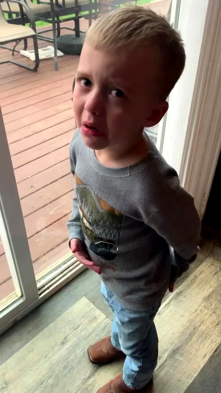A tot boy cries because his older sister said dinosaurs are not the coolest things in the world.