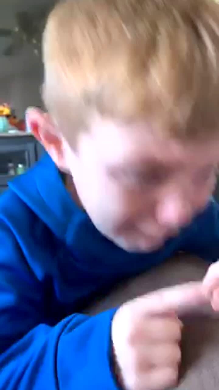 "Surprise, She's Still Alive!" In a kitchen, a young boy makes a thank you video for his aunt who sent him a gift as he asks, "did you send this from heaven?" His mom replies that she lives in New York, as he says, "Oh, you're still alive!"