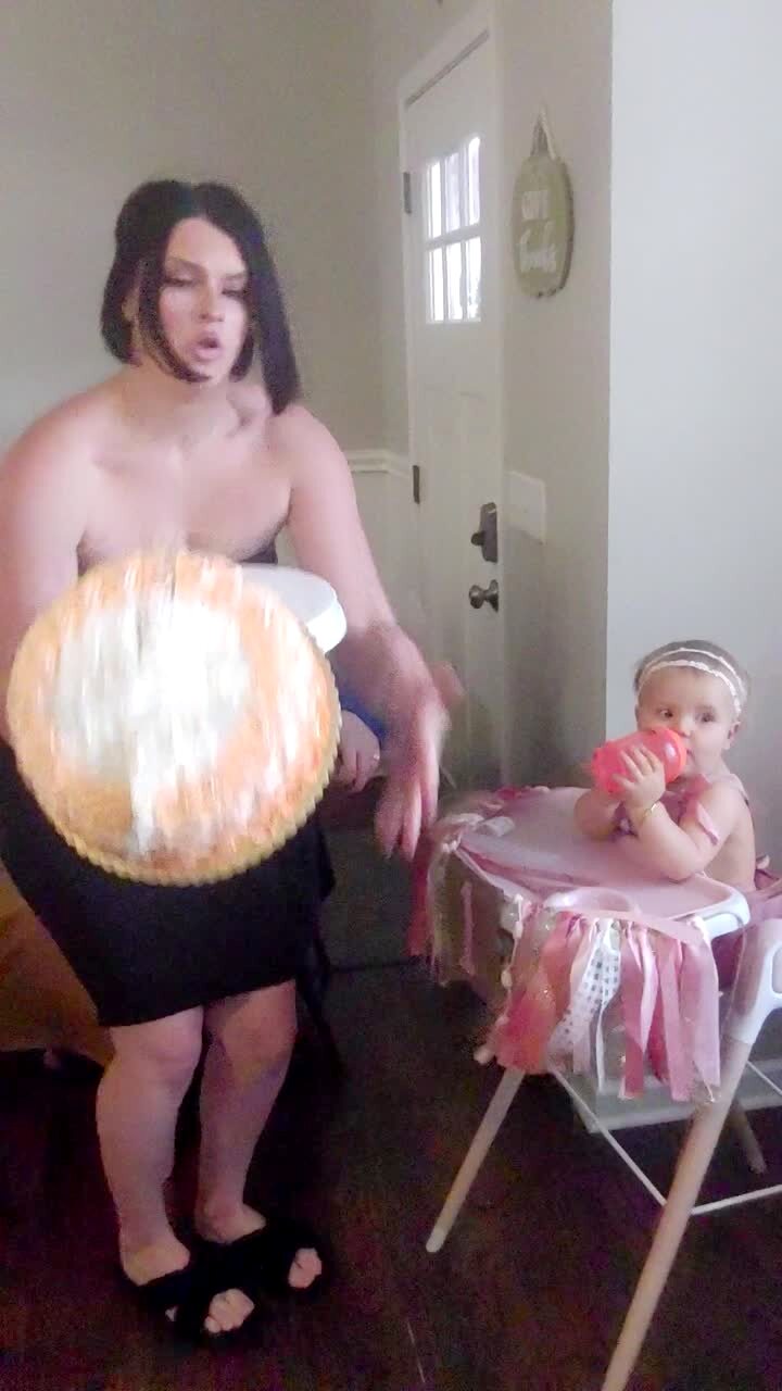 A pitbull dog puts a cat's head in their mouth as they yawn on the couch until a woman tells him not to eat them.