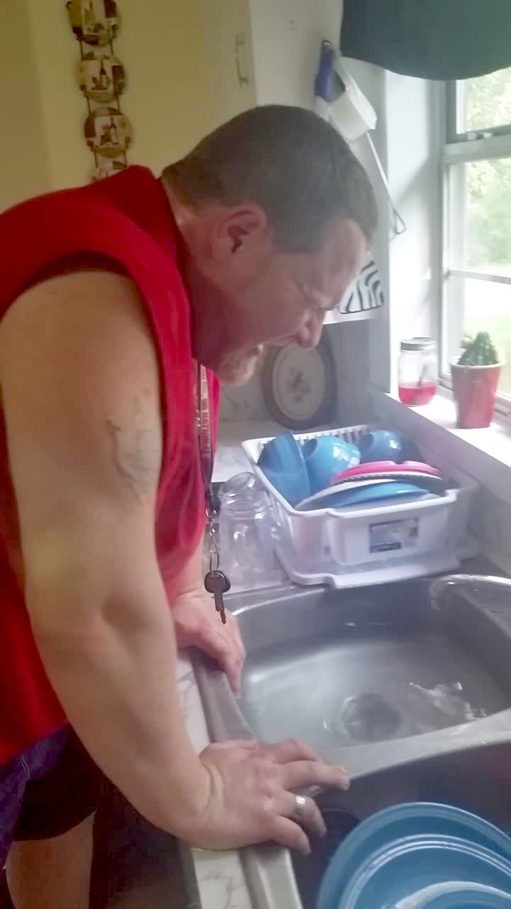 A man has his daughter spray mace in his eyes to demonstrate that it will stop an attacker. When the spray hits him he panics and screams. Featured talent cleared (the man who is maced and the girl who sprays him).