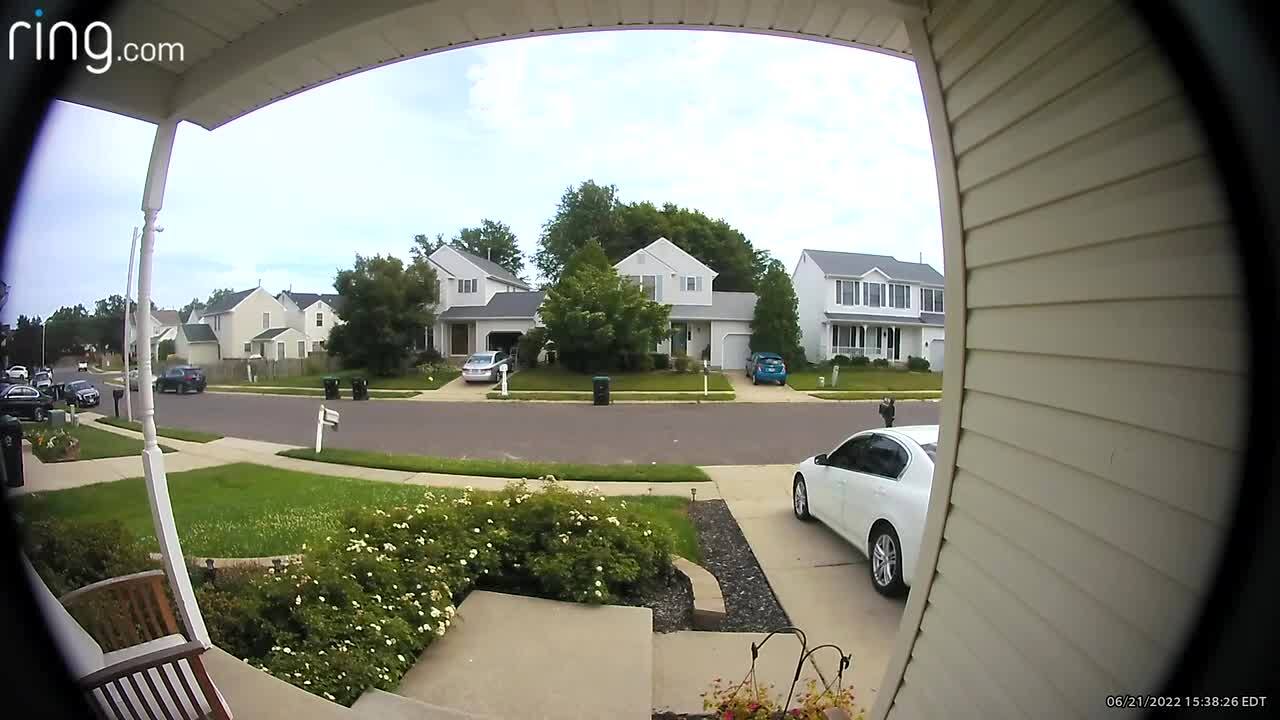 A man gets in the car and gets out as it's in gear then jumps back in in the driveway. Security footage.