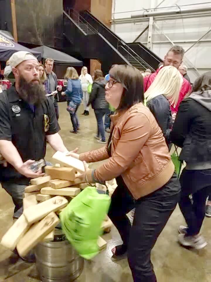 A woman stands on a bin as she exercises. The bin tips over and she falls down.