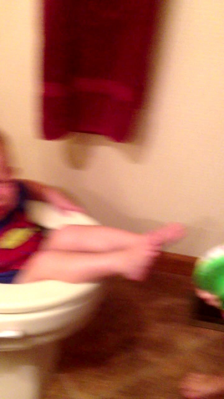 A man finds his crying tot boy stuck in the toilet after his older boy pulled out a potty training seat from under the tot boy in what he claims repeatedly was an accident. The man asks why the tot boy is brushing his teeth and the older boy explains "He wanted to!"