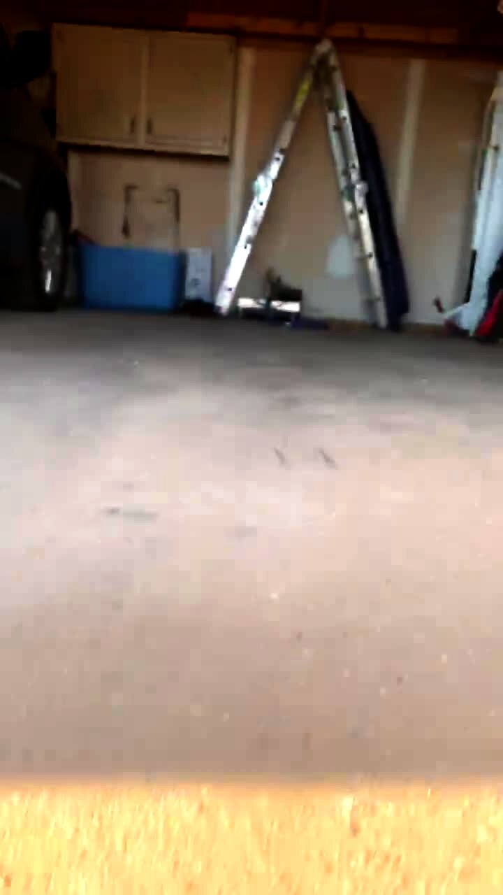A man and his family scream in their yard while a muskrat rat repeatedly runs back into their garage as he uses a broom to push it out.