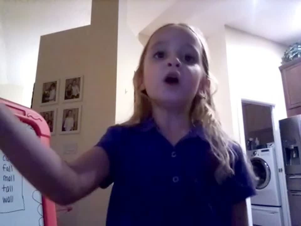 A young girl blows a kiss to the camera, then she screams "my tooth fell out" in a living room.