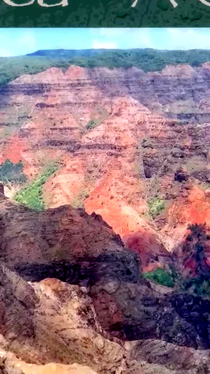 Two women talk about the beautiful view of a canyon and show it in the camera, and then step away and reveal the view was only an image on a placard and the real canyon is covered in fog.