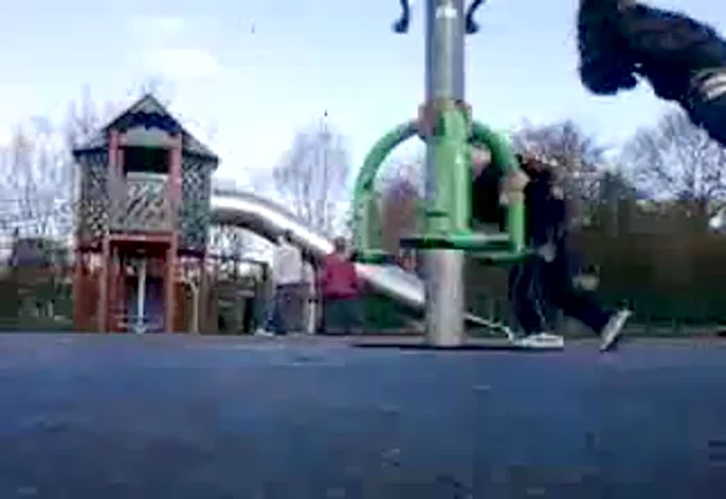 A woman attempts to mimic the famous dance lift scene from Dirty Dancing, but the man who catches her lets her topple over him as he drops her to the ground. No release for the woman who wanders into the frame at the end (face not visible). Music rights not cleared.