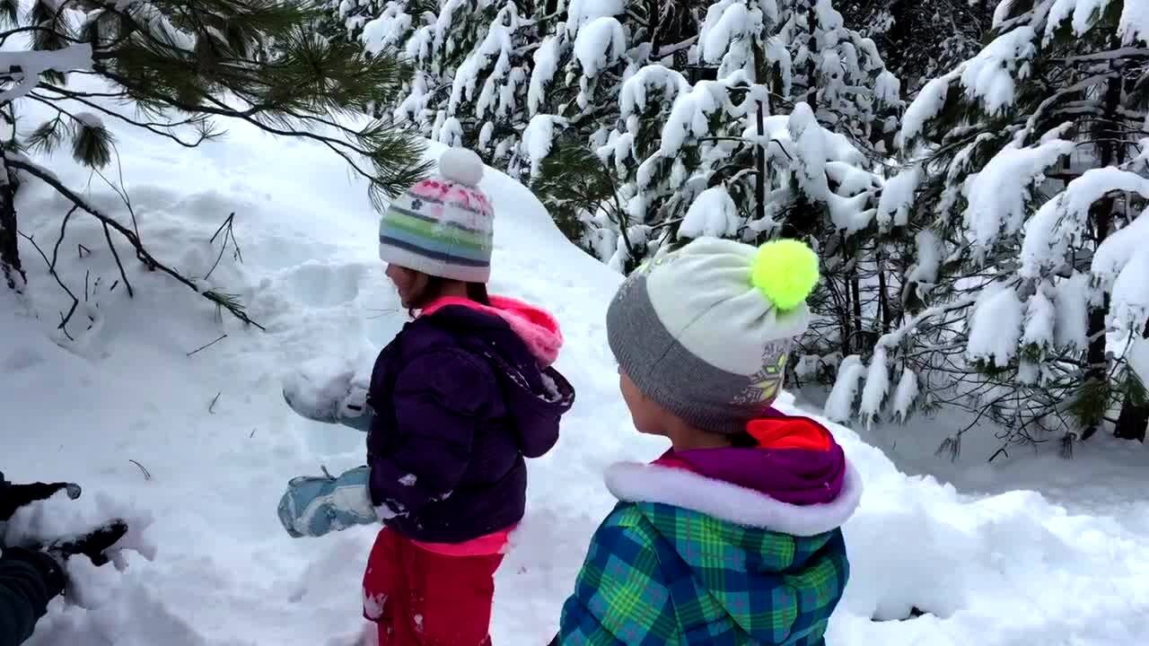 Practical joke - Dad hits fence with shovel, causing snow avalanche on kids