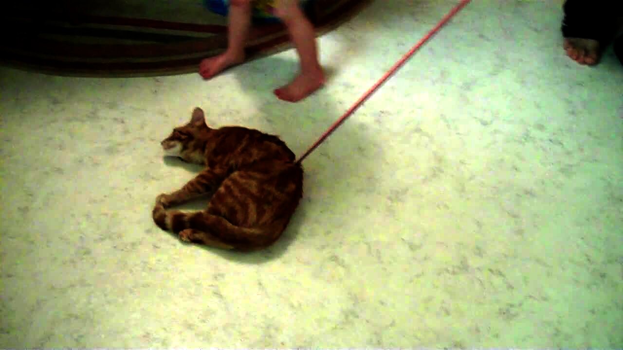 A tot girl cries at the dining table, and her dad asks what her favorite food is and she says "not broccoli" while she has some in her mouth.