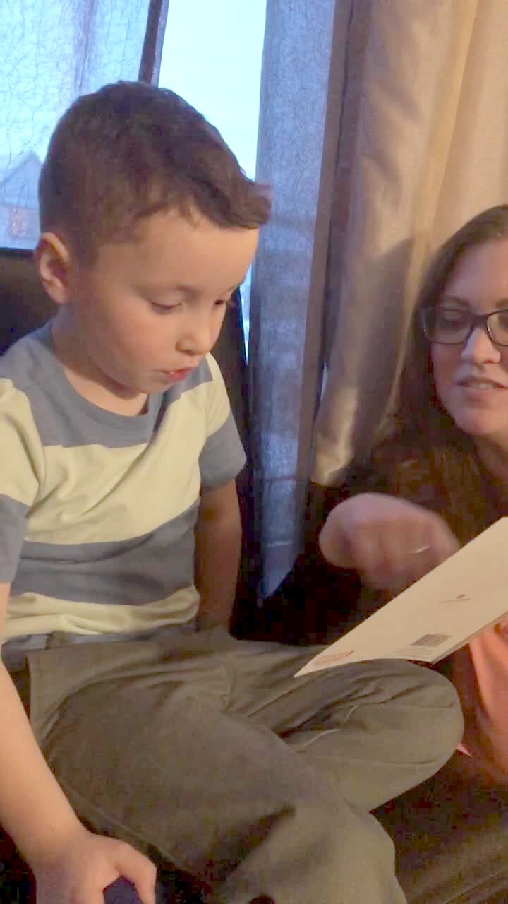 A young boy in a kitchen reads a yogurt label and says the amount of cholesterol is "oh my god." The woman with the camera says it's 0 milligrams (0mg).