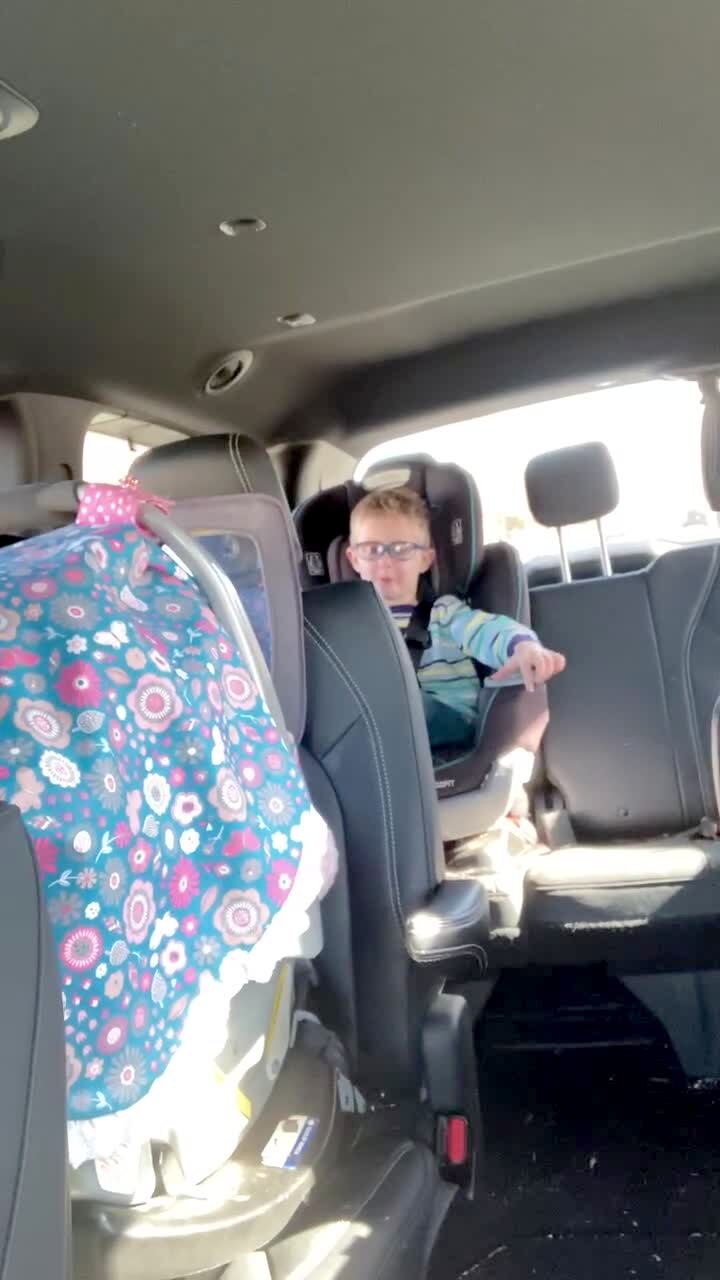 "Three Rows of Oh-No's" When a mom turns her back on her vehicle to talk to a friend, a young boy makes a mess with a bag of flour and covers the seats and other children in the car with it. They boy says, "mama, I was just cleaning your car."
