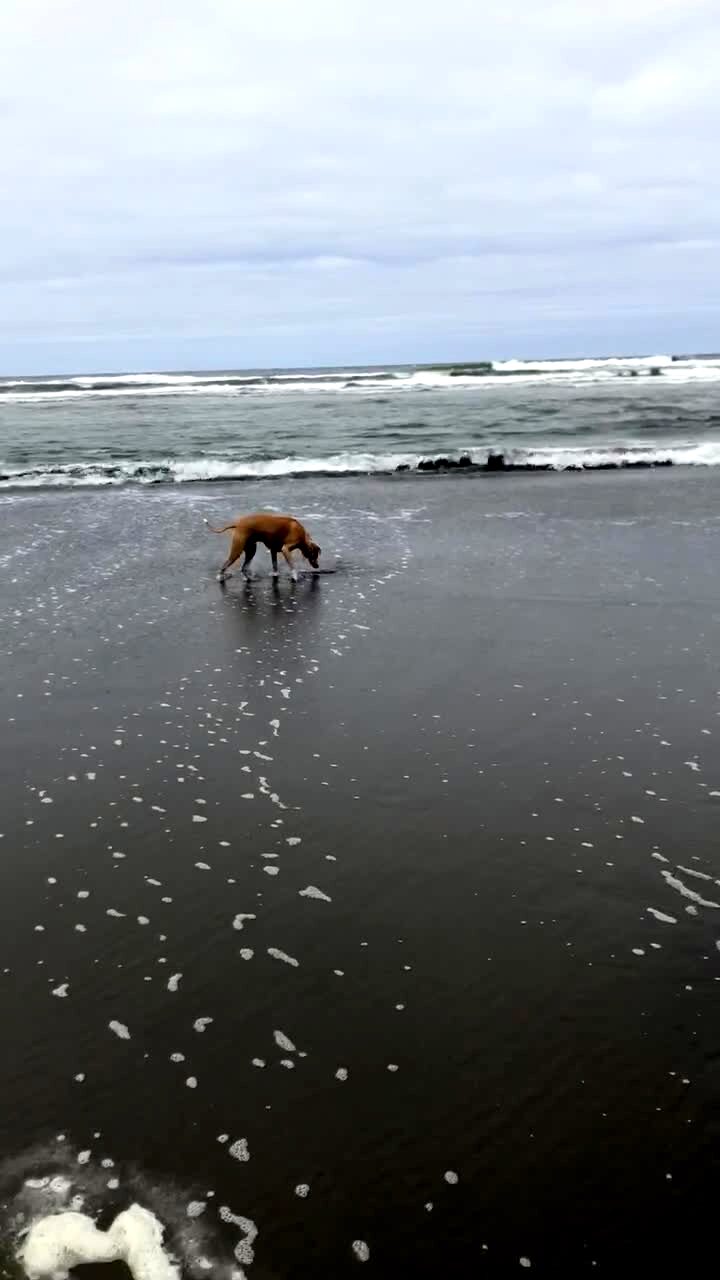 A bird steals a Cheeto from a young girl's hand at a beach. Slow motion.