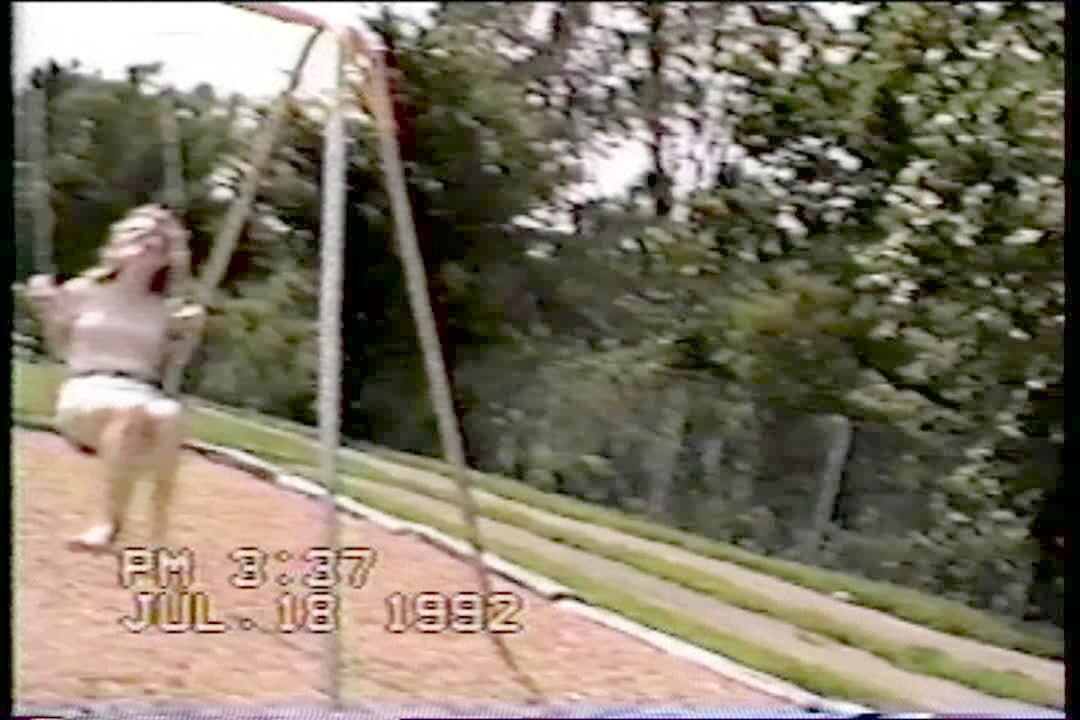 Playground woman does trick on swing, hits head on ground