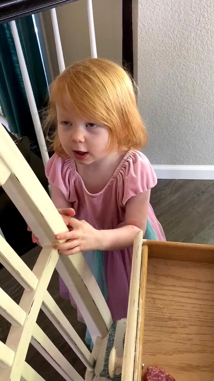 A tot boy and a young girl look at cupcakes which expose the gender of their new sibling and they eat them and the boy says, "Pink, it's a boy" in the kitchen.
