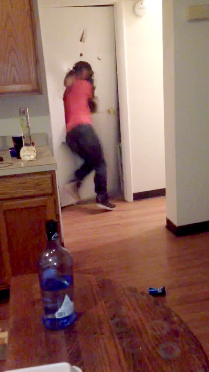 A man s and crashes through a wooden door at a party. Music rights not cleared.