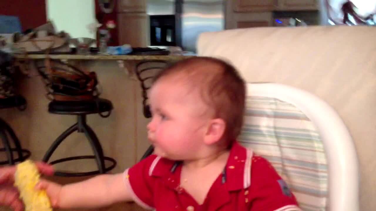 "Eye-Rolling Rascal" A baby boy tries to take his spoon from his mom, but she says no. He glares at her, and she tells him she can say no. Then he rolls his eyes at her.