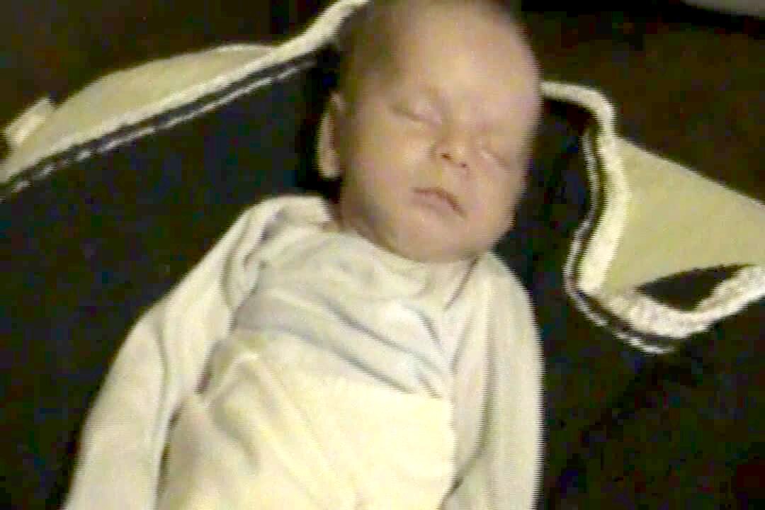 Sleeping newborn baby raises his arm when dad lowers the opposite arm.