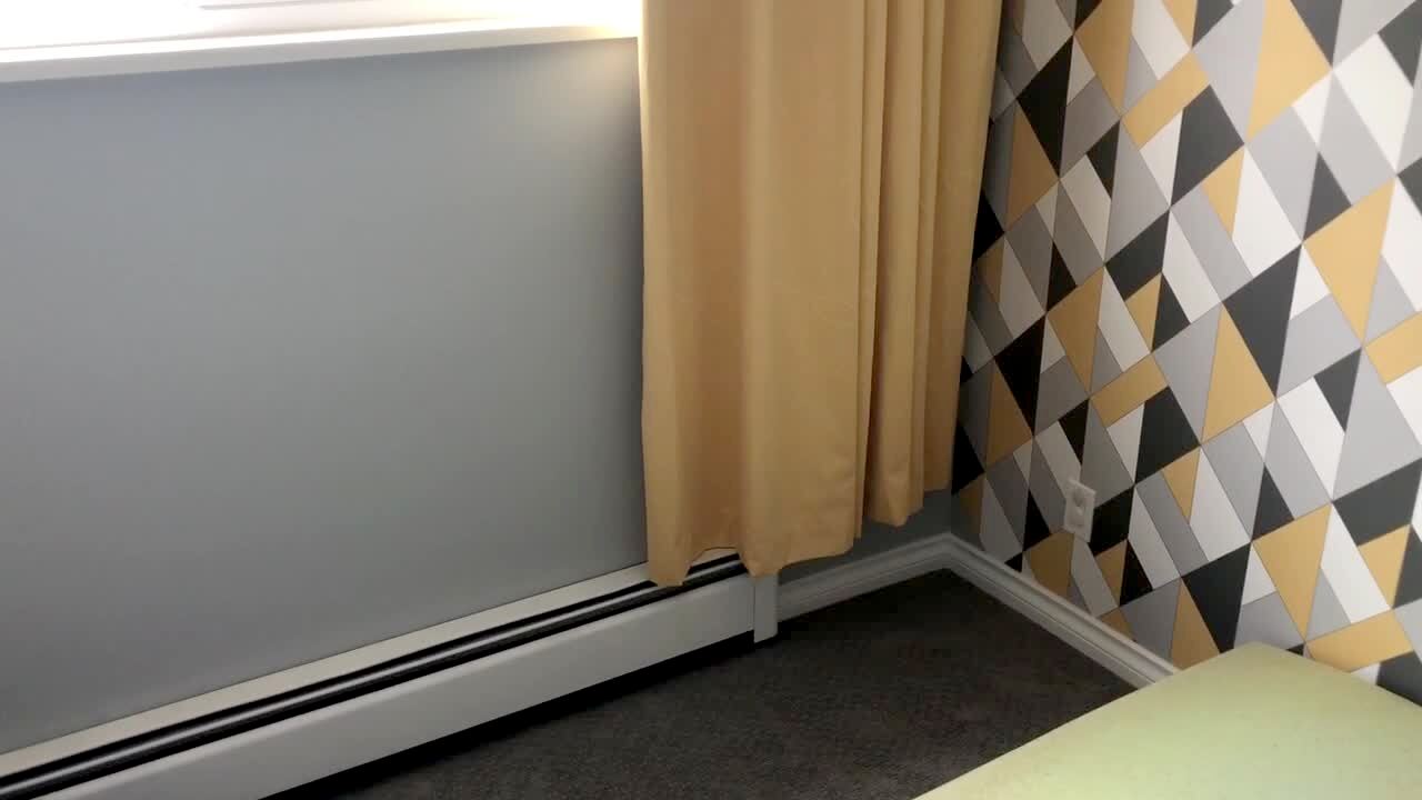 A man plays hide and go seek with his tot son, who only hides his head under a mattress pad. His dad asks if he is hiding in various spots and the tot boy answers no.