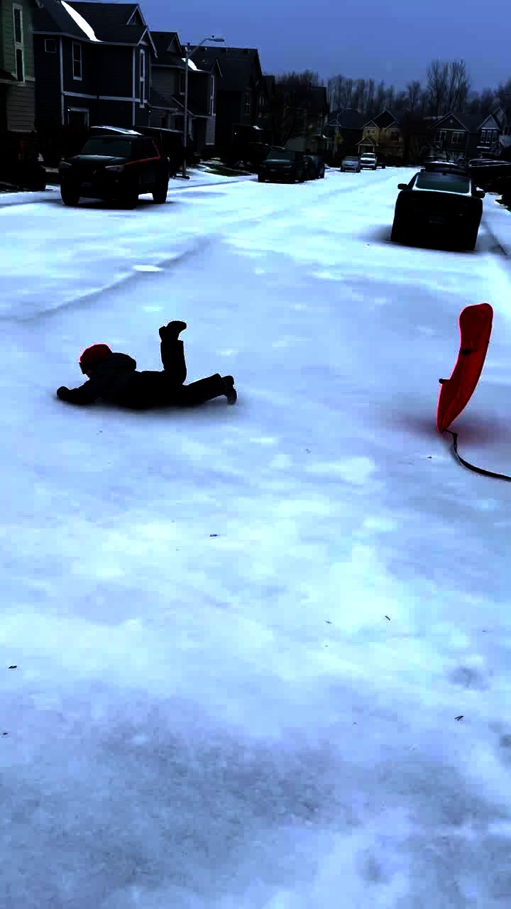 A young boy tells his father "I got better balance than you," then the man rides a skateboard and falls down on the driveway. Security footage.