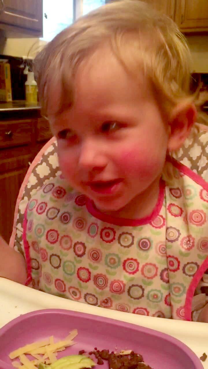 A tot girl says she ain't scared of nothing so her dad asks do snakes scare you and she leans back in her chair and says a little bit.