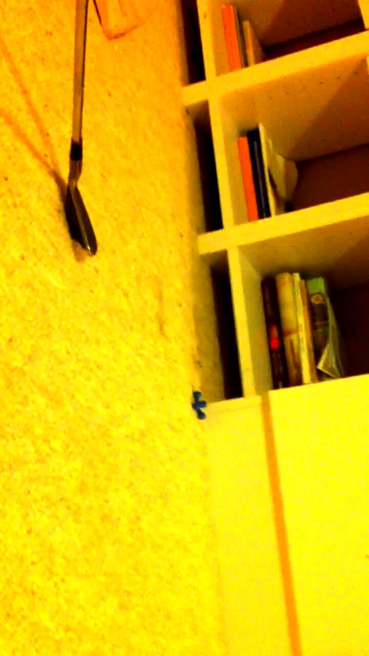 A man opens a window while a squirrel runs around a storage room, then the squirrel climbs up his leg and makes him scream and jump around. Security footage.