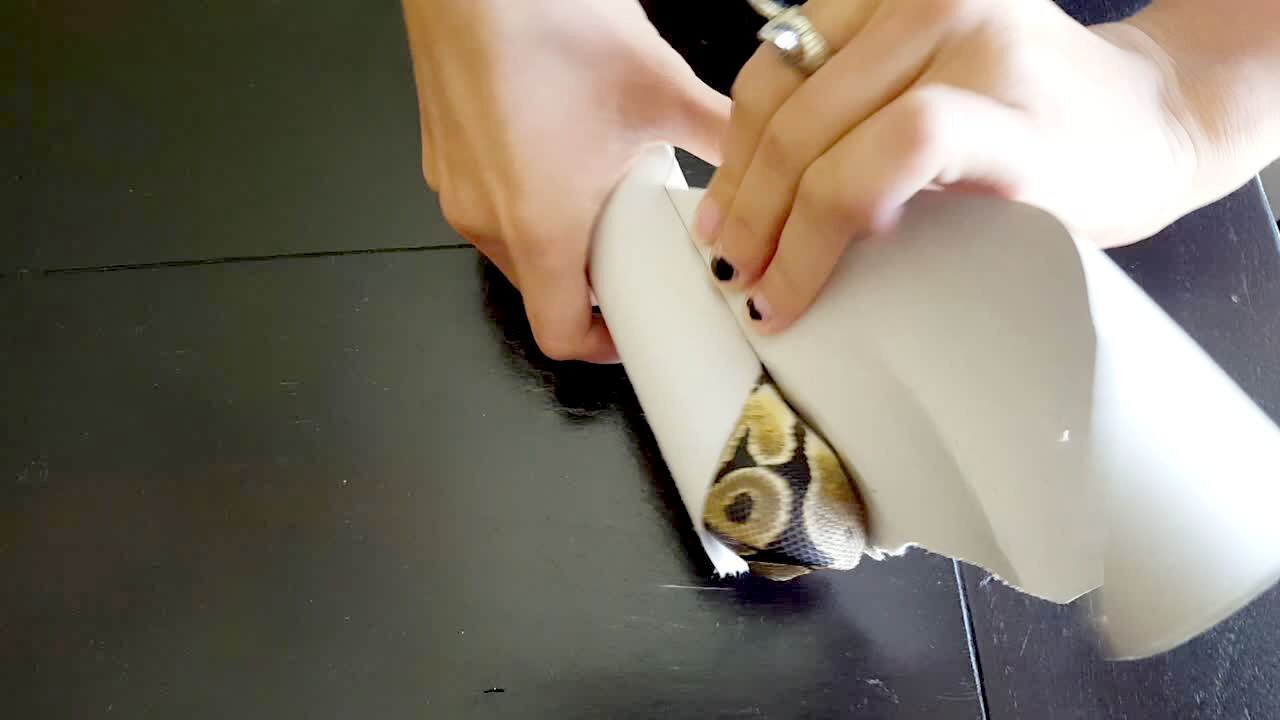 Man & woman are scared while trying to get a snake out of the house. They use tongs & try to pull it. Video cuts before they get it outside.