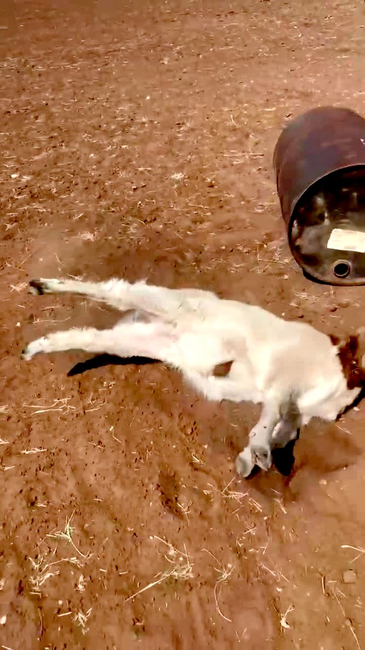 Teen boy rides bike off ramp on dirt trail/road into pond, flies off bike and screams.