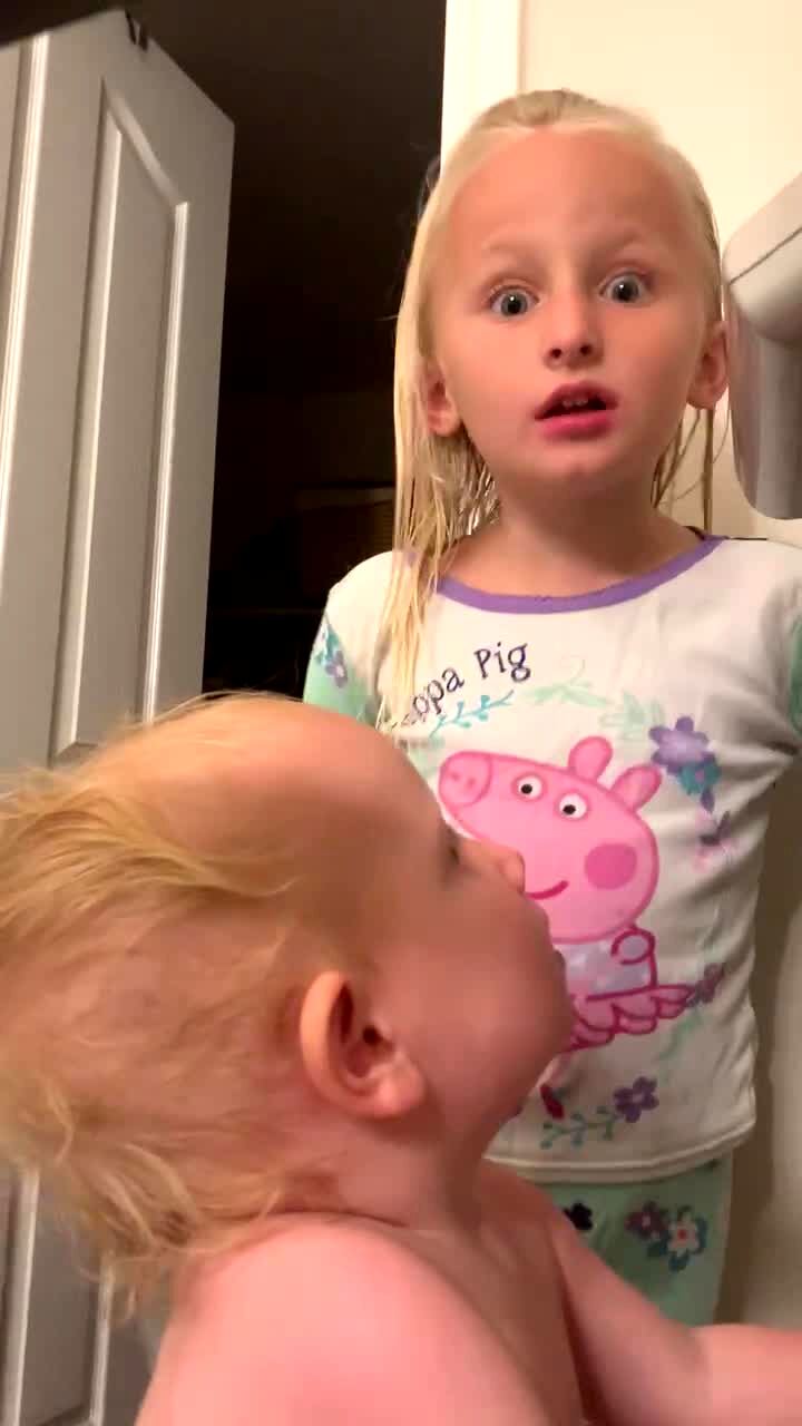 A young girl blows out her younger sister's birthday candles. One of the girls yells "IT'S NOT YOUR BIRTHDAY!"