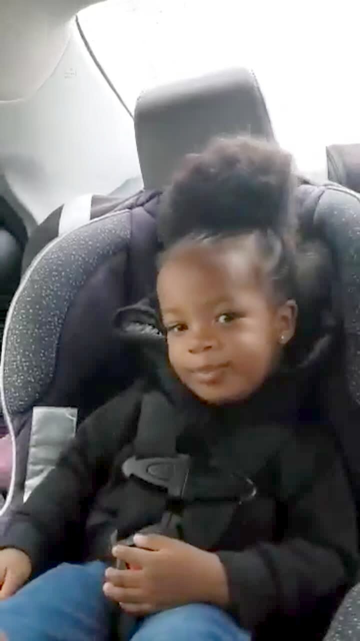 A tot girl yells "suck it up" to a tot boy who cries in the back seat of a car.