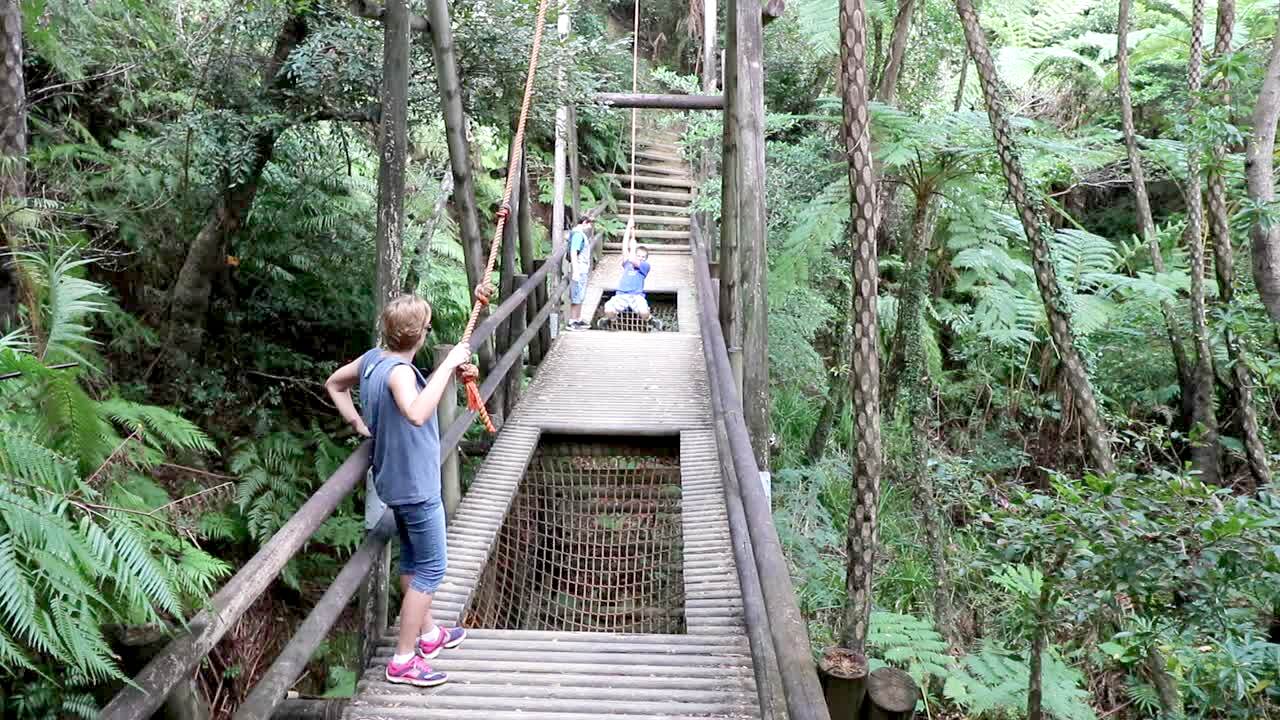 Two young boys sit on a bunk bed in a bedroom. One of them tries to climb down the ladder and as he drops his wait onto the mattress and the support boards collapse and they both fall down. Music rights not cleared.