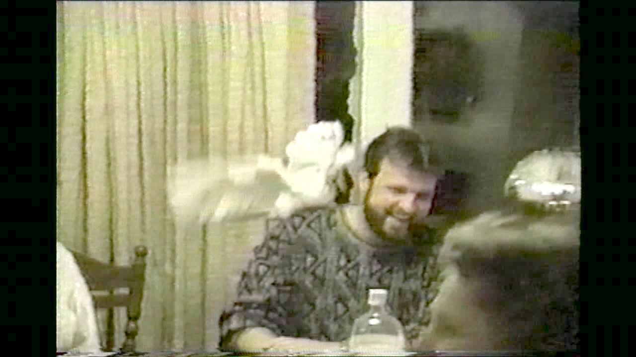 A man pokes at a Christmas tree with a stick and a bird flies out. Later, it's perched on the star on top of the tree and he tries to catch it in a net. It flies away and his wife screams.