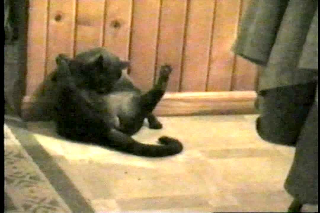 cat playing with itself while bathing. Licks itself while grooming and scratches butt hole
