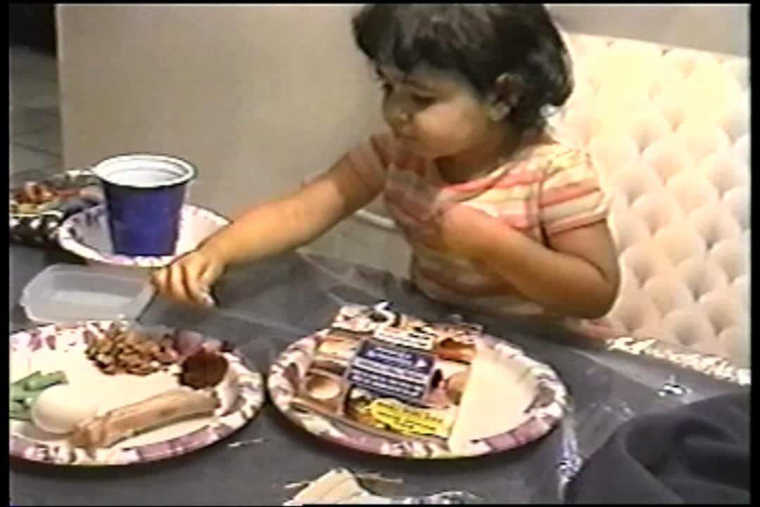 Tot girl eats bitter herbs and makes her gag. She says I no like it and she makes a horrible face.