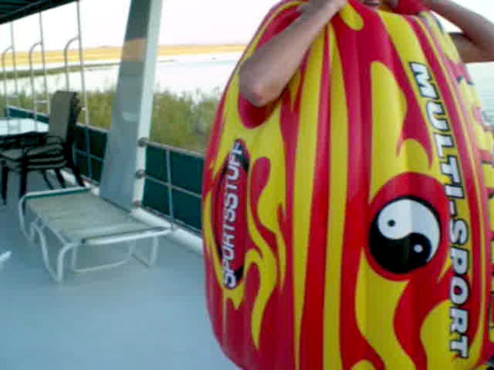 Young boy lifts kiddie slide from pool, gets trapped under it and yells for help
