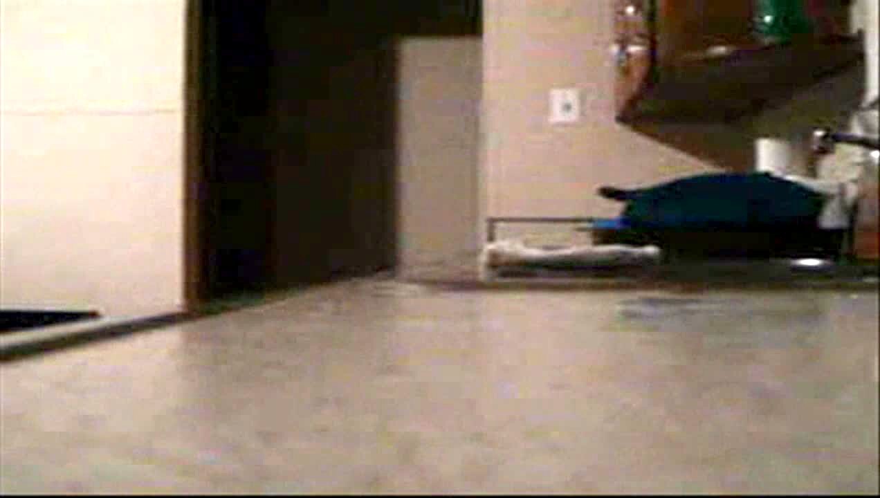 A teen boy gets his brother to open a door with a bucket of water on top of it. Action at :15. practical joke