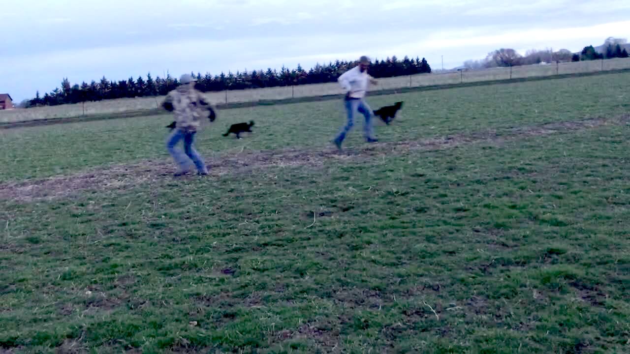 A senior man flinches and falls over when something explodes behind him outdoors. Featured talent cleared (the man who falls over).