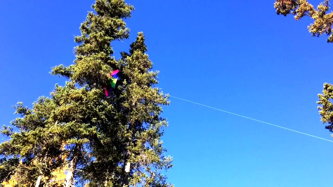 A boy hyperventilates while trying to throw a toy tied to his loose tooth outdoors to pull it out. The boy repeatedly makes halfhearted attempts and complains at how much it hurts.