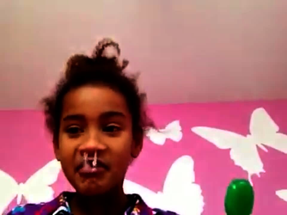 A teen girl and her little brother blow plastic bubbles indoors but the boy blows too hard and a huge string of snot shoots out of his nose. Gross.