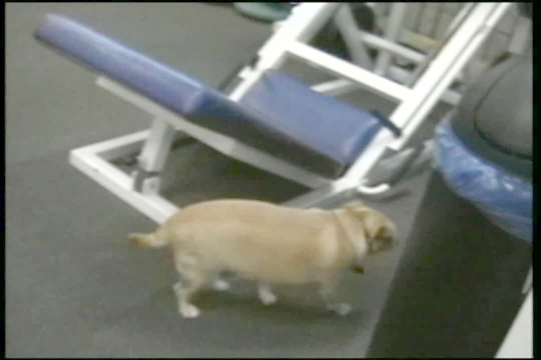 Fat Chihuahua dog held by woman. She puts him down and asks him to go for a walk, dog growls and barks.